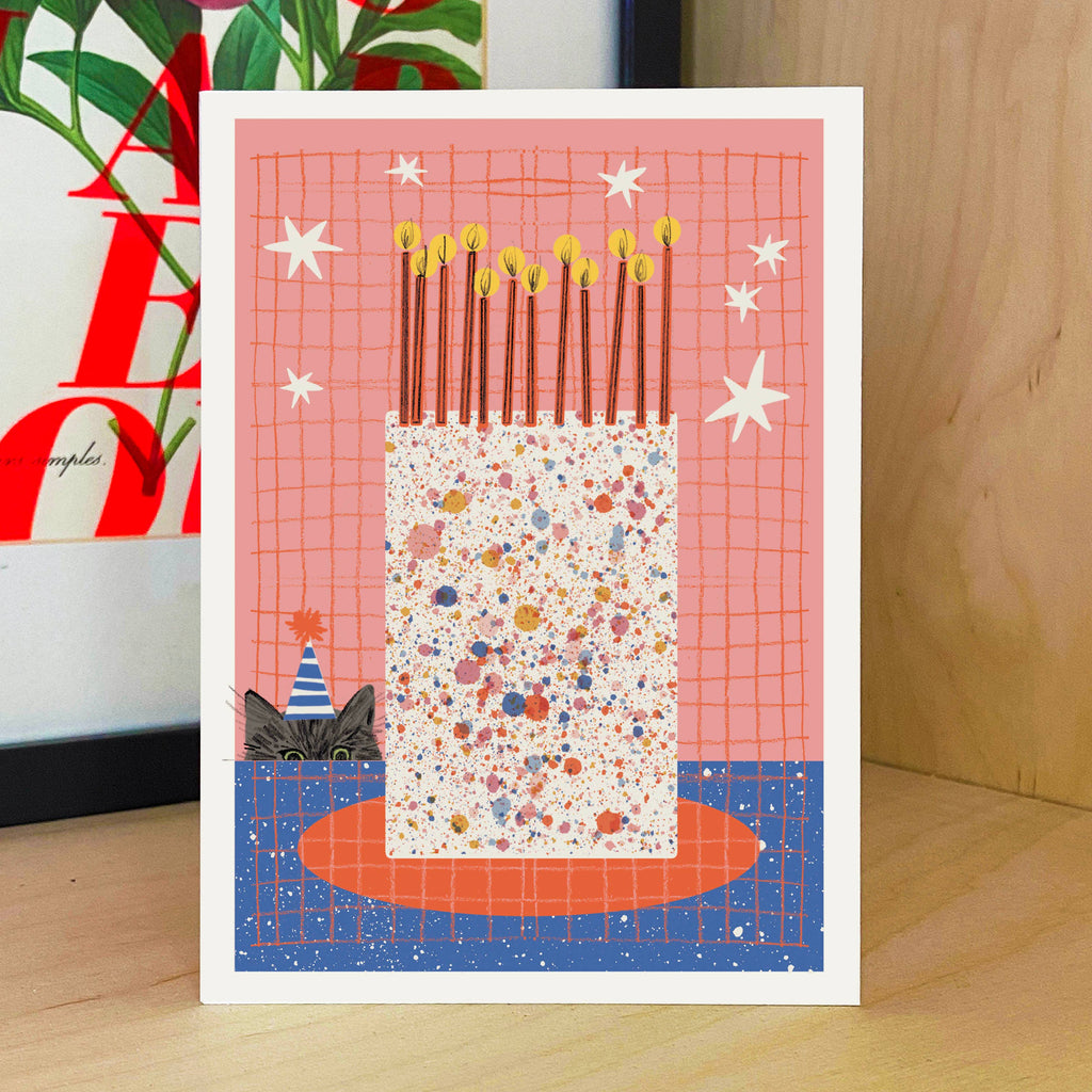 Aimee Mac Illustration Cat & Cake Birthday Card