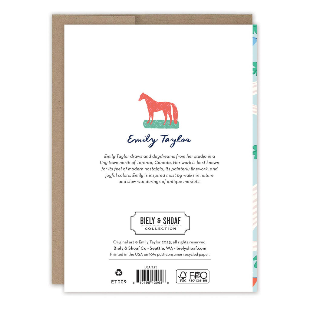 About the artist: Emily Taylor draws and daydreams from her studio in a tiny town north of Toronto, Canada. Her work is best known for its feel of modern nostalgia, its painterly linework and joyful colors. Emily is inspired most by walks in nature and slow wanderings of antique markets.