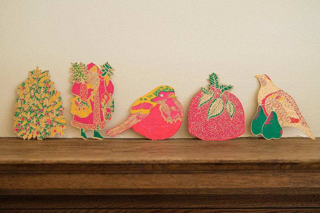 • Beautifully screen-printed festive greeting cards
