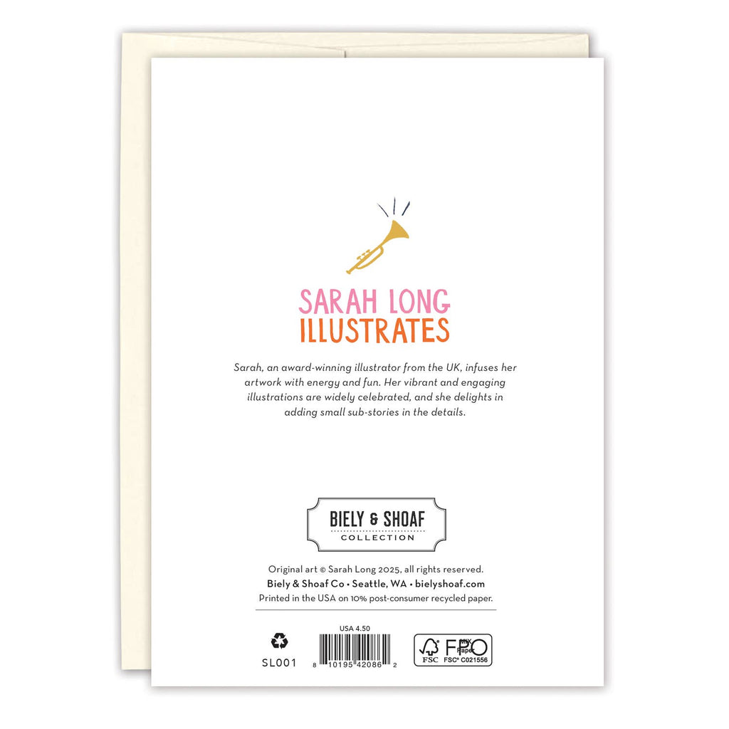 About the artist: Sarah Long, an award-winning illustrator from the UK, infuses her artwork with energy and fun. Her vibrant and engaging illustrations are widely celebrated, and she delights in adding small sub-stories in the details.