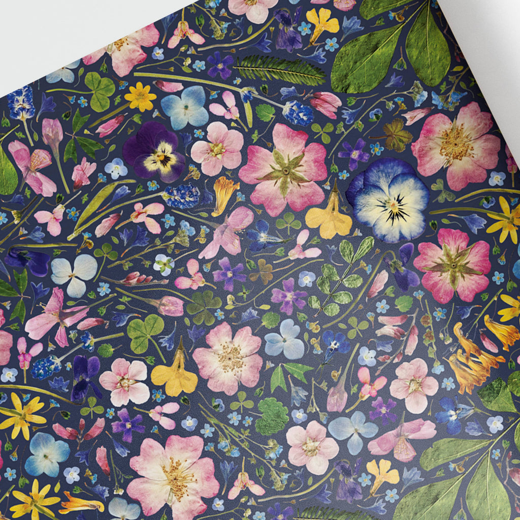 Lucy Miller - Pressed Flower Wrapping Paper - Ink (Dark background)