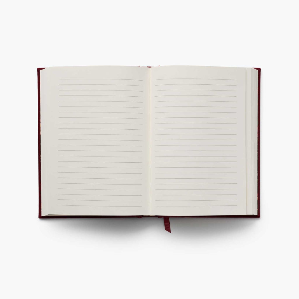 • This keepsake journal features gold-ink accents and a grosgrain ribbon to save your place