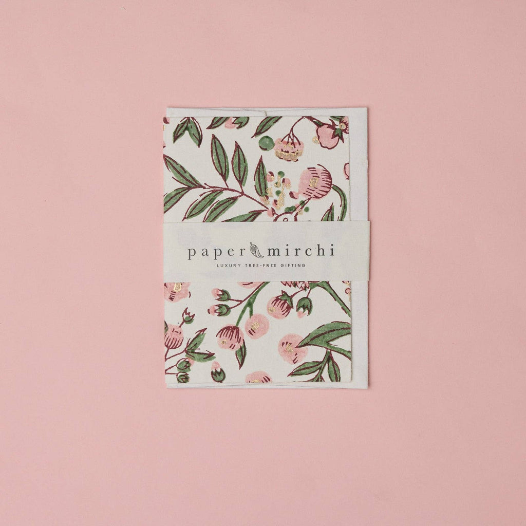 • Paired with a beautiful peel-and-seal envelope, lined with the matching block print design for an elegant touch