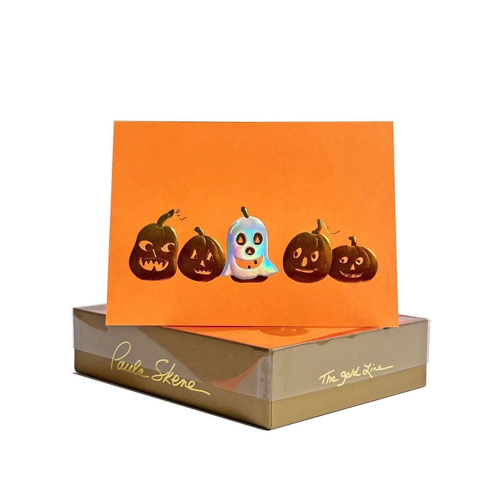 PAULA SKENE DESIGNS - Ghost Pumpkin on Orange Halloween Card