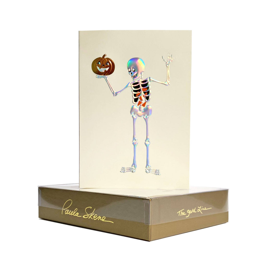 PAULA SKENE DESIGNS - Skeleton Holding Pumpkin Halloween Card